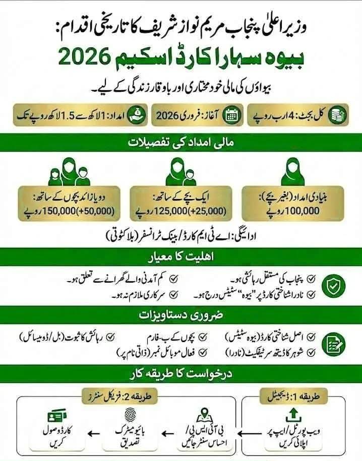 بیوہ سہارا کارڈ اسکیم 2026