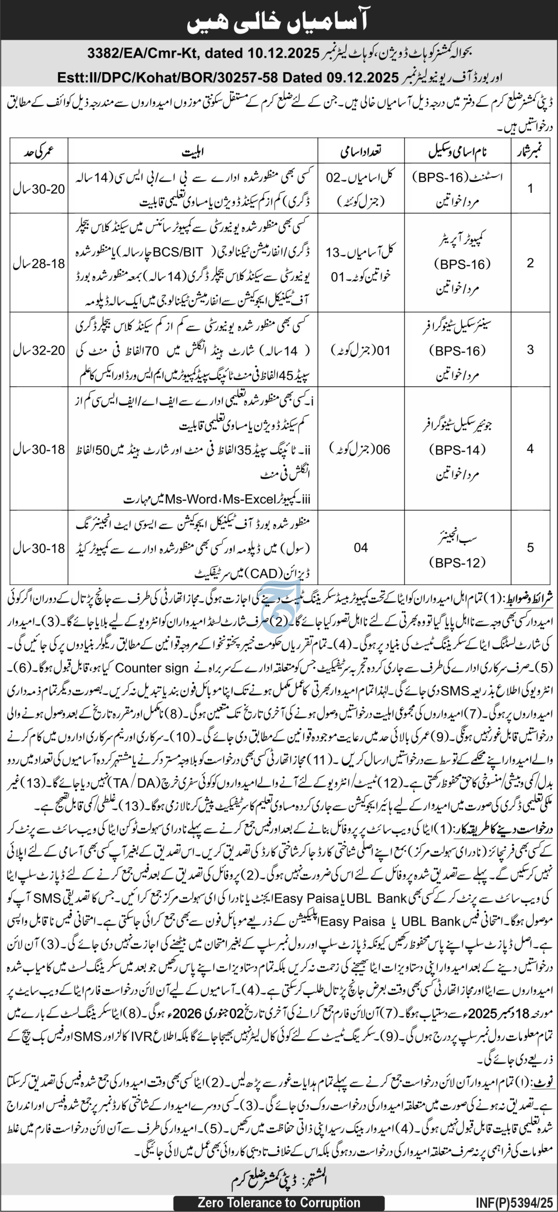 β Job Advertisement β Deputy Commissioner Office Kurram
