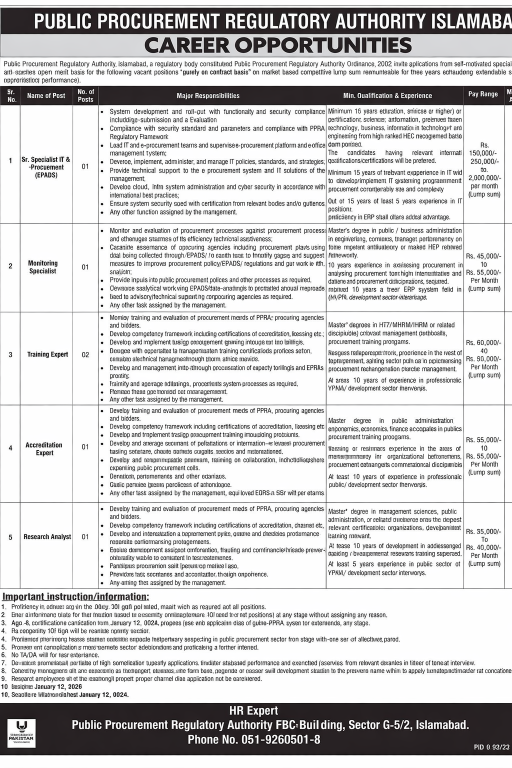 📍 PPRA, FBC Building, Sector G-5/2, Islamabad
