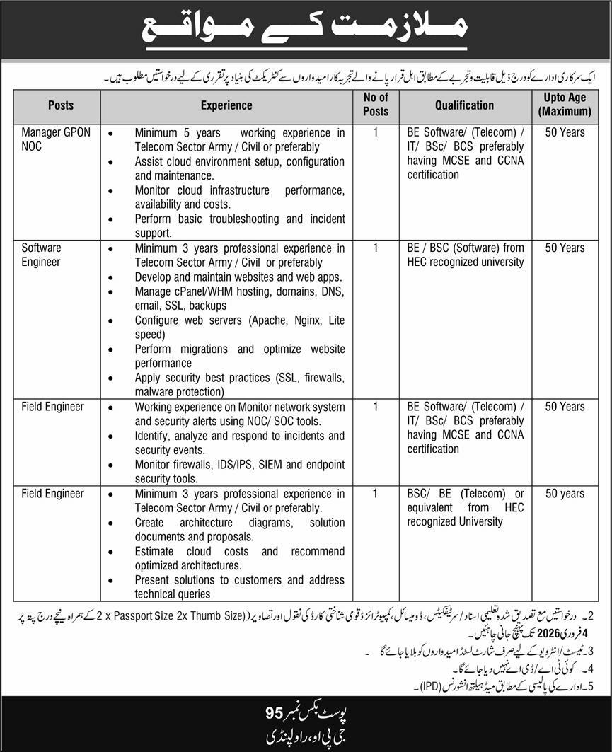 - Qualification: BSc/ BE (Telecom) or equivalent from HEC recognized university.